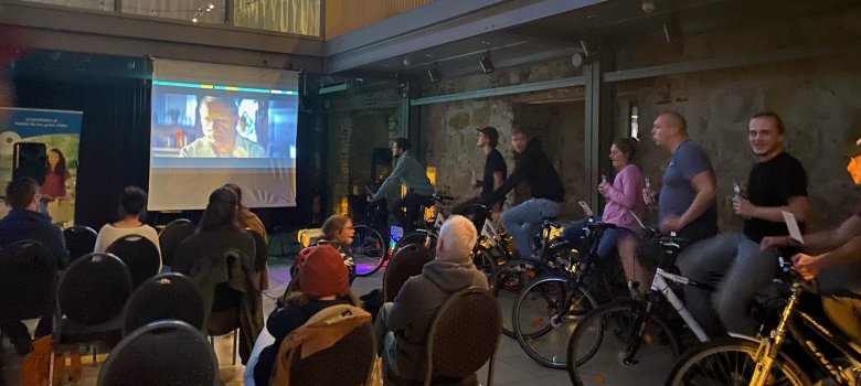 Los ging es mit dem Interkommunalen Mobilitätstag in St. Augustin am Freitag. Neben Fachvorträgen und Informationsständen gab es eine Aktiv-Fläche im Außenbereich, auf der E-Bikes, Lastenräder uvm. getestet werden konnten. Der Tag wurde durch das Fahrradkino in der Remise der Burg Wissem abgerundet. Der Clue beim Fahrradkino: Der Film läuft allein durch selbsterzeugten Strom, der von den Besucher*innen selbst durch fleißiges Radeln erzeugt wurde! Mit Hilfe von Generatoren und Wechselrichtern wurde diese Energie in Strom umgewandelt, der Projektor und Soundanlage am Laufen hielt. Es radelten zeitgleich immer 10 fleißige Zuschauer*innen, um den Film „POWER TO CHANGE – Die EnergieRebellion“ abspielen zu lassen. Das Stromerzeugen war anstrengender als gedacht. Nichtsdestotrotz war die Aktion ein voller Erfolg - alle Beteiligten hatten großen Spaß.