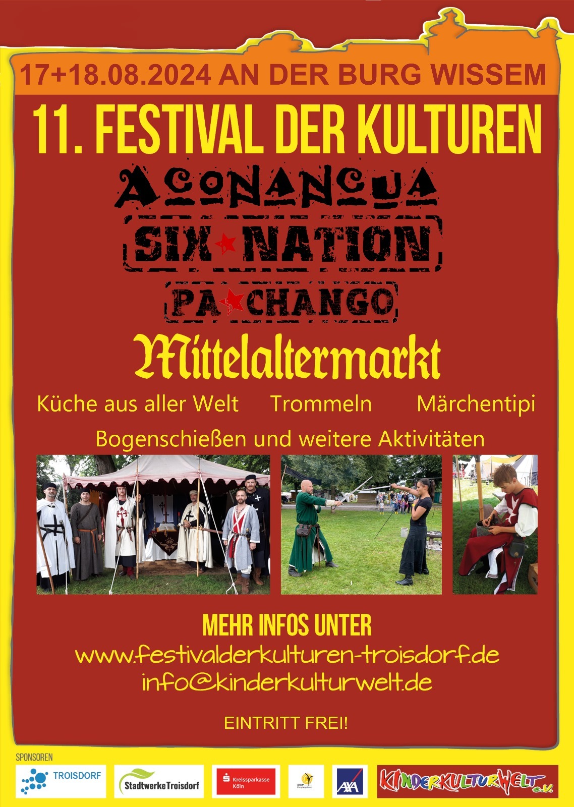 Am Samstag,17. und Sonntag,18. August (samstags, von 14 bis 22Uhr; sonntags, von 11 bis 21Uhr) findet das 11. Festival der Kulturen und ein Mittelaltermarkt an der Burg Wissem, statt.