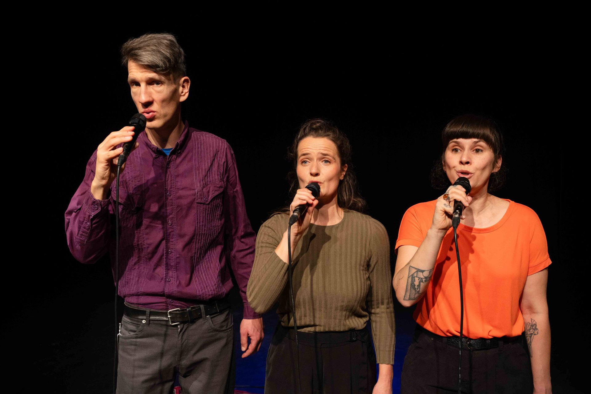 Mit stimmgewaltigem Ausdruck und politischer Klarheit präsentieren die drei Künstler*innen Anne Munka, Jan F. Kurth und Fiona Combosch einen Liederabend, der sich zunehmend zur musikalischen Intervention wandelt. Im Zentrum steht die Frage: Was können wir tun, wenn Hoffnung schwindet, Gesellschaft zerfällt und Gemeinschaft in Frage gestellt wird?