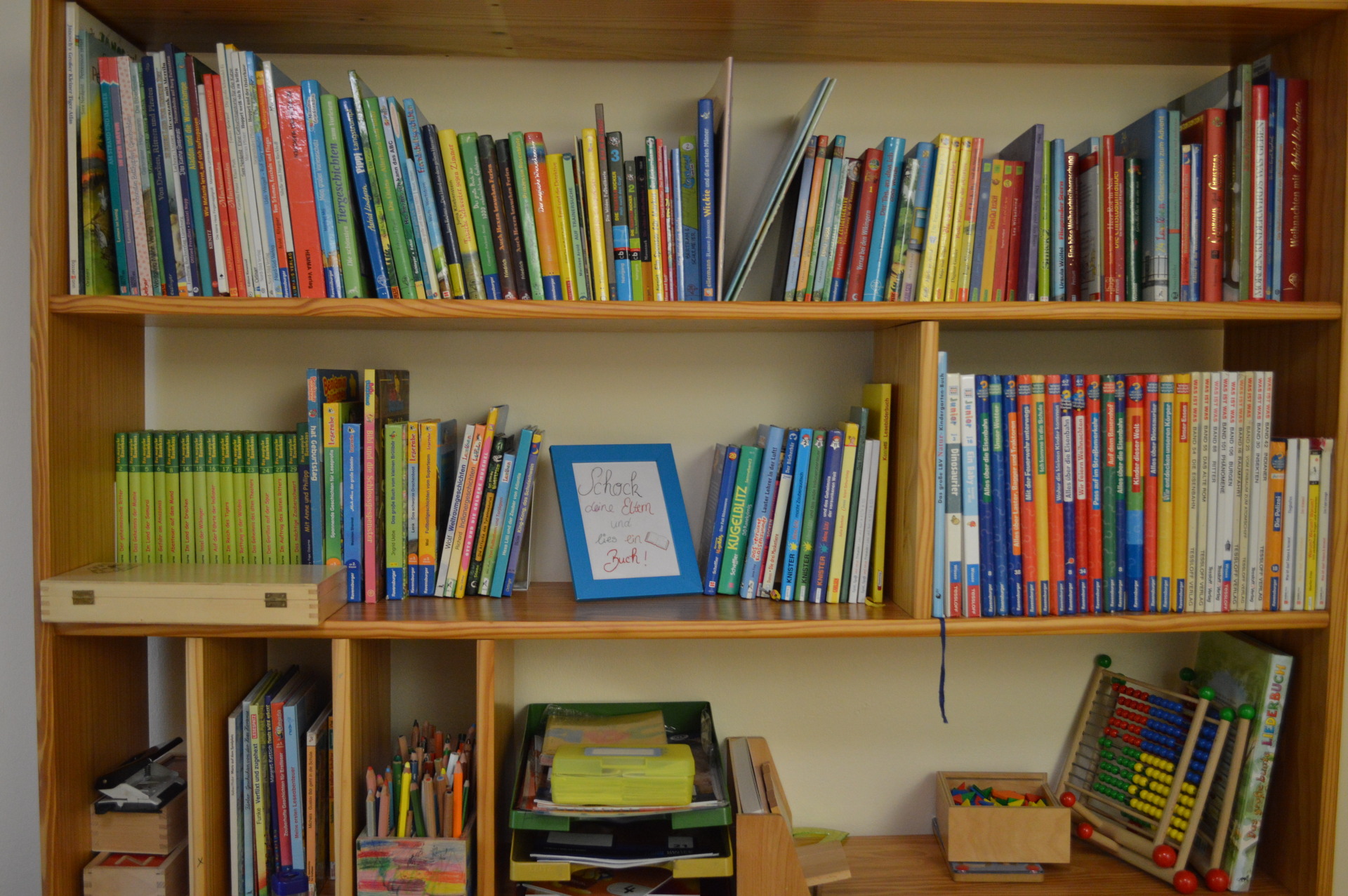 Unter kompetenter Anleitung üben die Kinder mit spannenden Büchern das Lesen und steigern ihre Lesekompetenz. Als Highlight besuchen jede Woche abwechselnd zwei Kinder dienstags die Stadtbibliothek, um dort Milow, dem Vorlesehund, eine Geschichte vorzulesen.