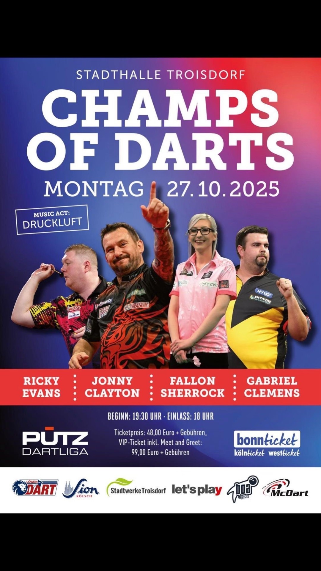 Am 27. Oktober 2025 lädt die Stadthalle Troisdorf zu einem besonderen Spitzentreffen der Darts Szene ein.