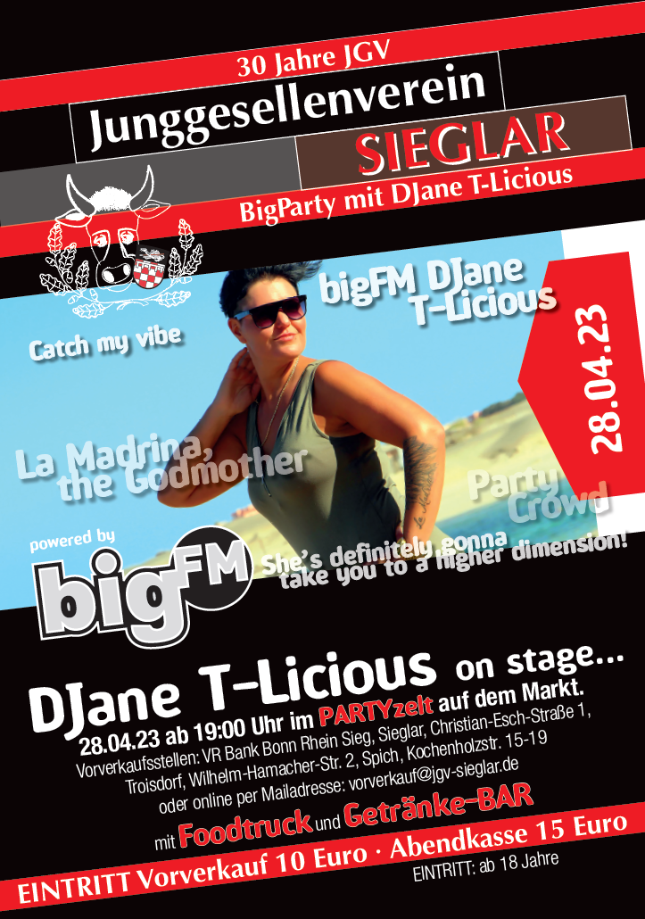 30 Jahre JGV, Junggesellenverein SIEGLAR, BigParty mit DJane T-Licious powered by bigFM