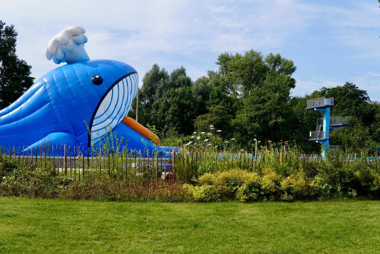 Als besonderes Highlight steht der blaue Riesenwal WALdemar im Sportbecken zum Klettern und Toben bereit. Auch an die Kleinsten ist gedacht. Sie dürfen sich auf Spiel und Spaß im Kinderbecken freuen. Als besondere Überraschung schaut zwischen 14 und 16 Uhr die beliebte Kinderanimateurin Funnyfanilla vorbei.