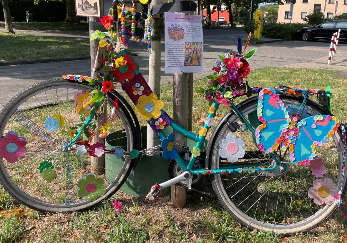 Alte, nicht mehr fahrbereite Fahrräder wurden von Kindergärten, der Trogata der Janosch-Grundschule, lokalen Unternehmen und der evangelischen Kirche fantasievoll bemalt, mit Blumen geschmückt und dekoriert. Insgesamt sind rund 15 dieser Kunstwerke zu sehen, die Neugier auf das Fest wecken und Farbe in den Stadtteil bringen.