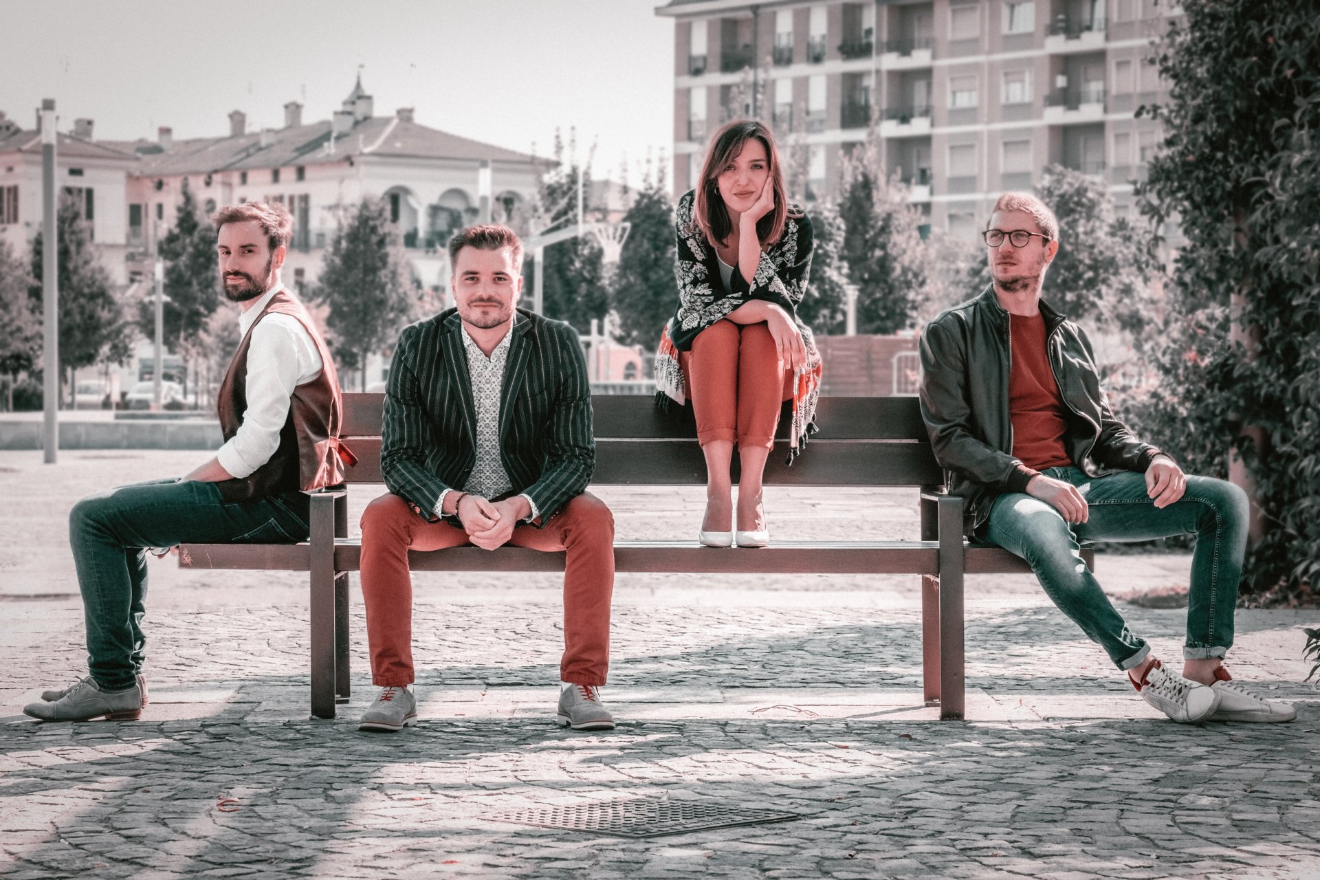Rebel Bit aus Cuneo in der italienischen Provinz Piemont ist eine sehr innovative Vocal Group. Die drei Sänger und eine Sängerin haben sich zum Ziel gesetzt, eine Klanglandschaft zu schaffen, die Vokalmusik und elektronische Experimente miteinander verbindet. Mit ihrem ersten Album PAPER FLIGHTS (2018) gewannen sie fünf Nominierungen bei den Contemporary A Cappella Recording Awards (Boston, USA) und fünf A cappella Video Awards (Los Angeles, USA). 2021 waren sie bei der elften Ausgabe der Fernsehshow Italia's Got Talent mit dabei. Ihr zweites Album COME (2021) erhielt zwei CARA-Preise (sozusagen die A Cappella Oskars) als "Bestes elektronisches/experimentelles Album" und "Bestes professionelles Arrangement". Die unterschiedliche künstlerische Entwicklung und die verschiedenen Einflüsse jedes einzelnen Mitglieds (von klassischer bis hin zu moderner und zeitgenössischer Musik) hat den außergewöhnlichen Sound der Gruppe geprägt. Elektronische Experimente und Innovation miteingeschlossen.