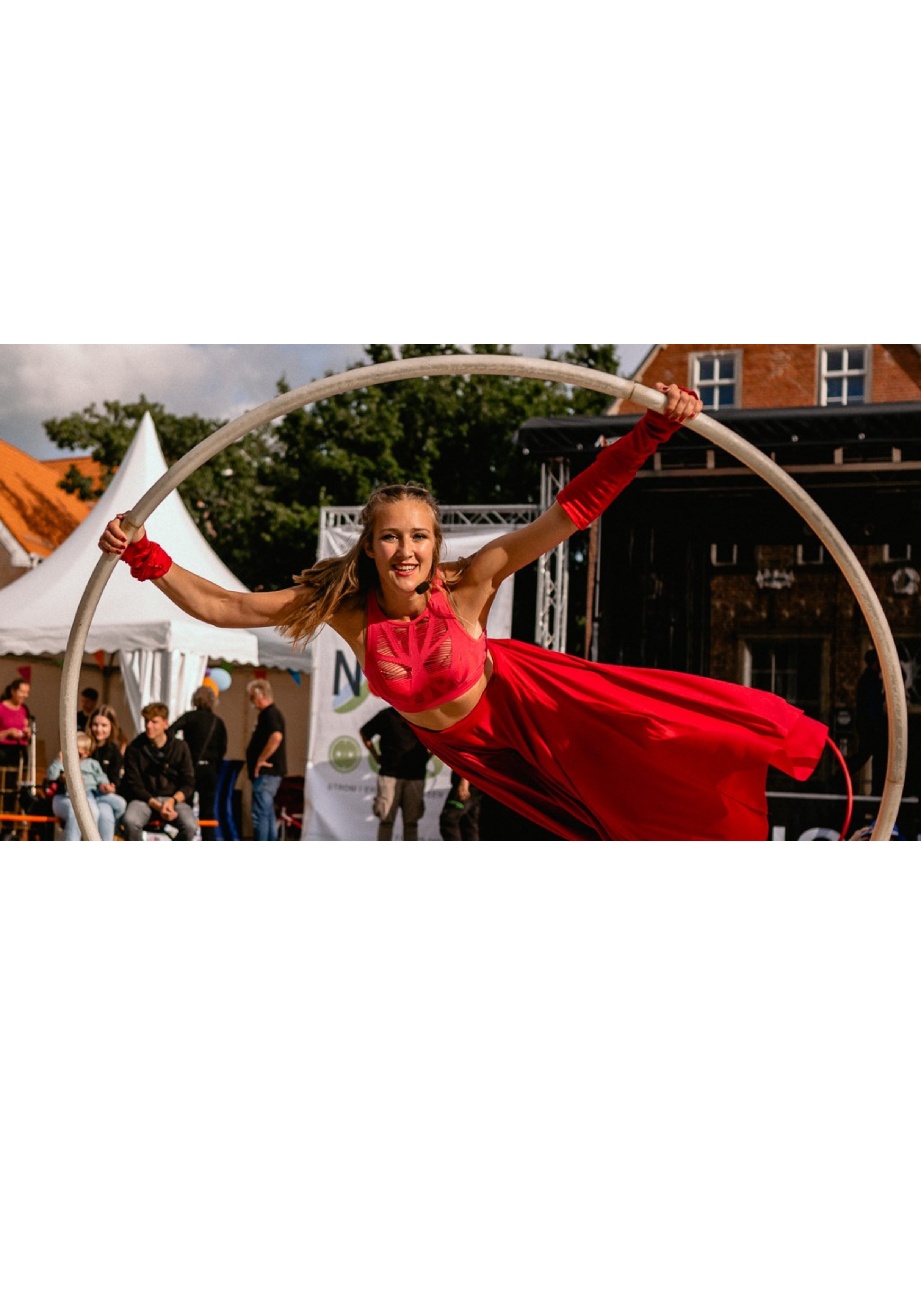 12.07.2024: Kerstin Oschabnig und Ibon Goita präsentieren mit ihrem Programm „Catch me, if I fall“ ausgeklügelte Luft- und Partnerakrobatik. Radkünstlerin Gina Sibila alias die „Lady in Rot“ begeistert mit ihrer atemberaubenden Cyr Wheel-Show.