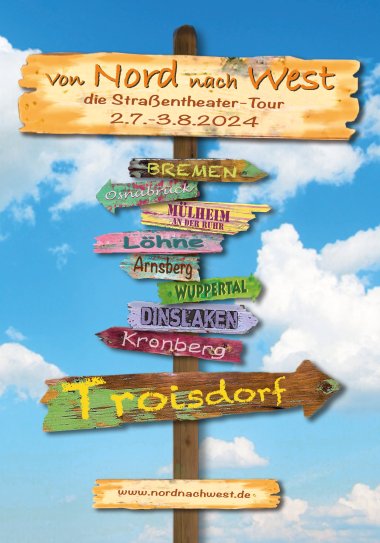 Straßentheater ist mobile Kunst. Von Nord nach West, von oben nach unten, wandern Sie mit uns durch Troisdorf.