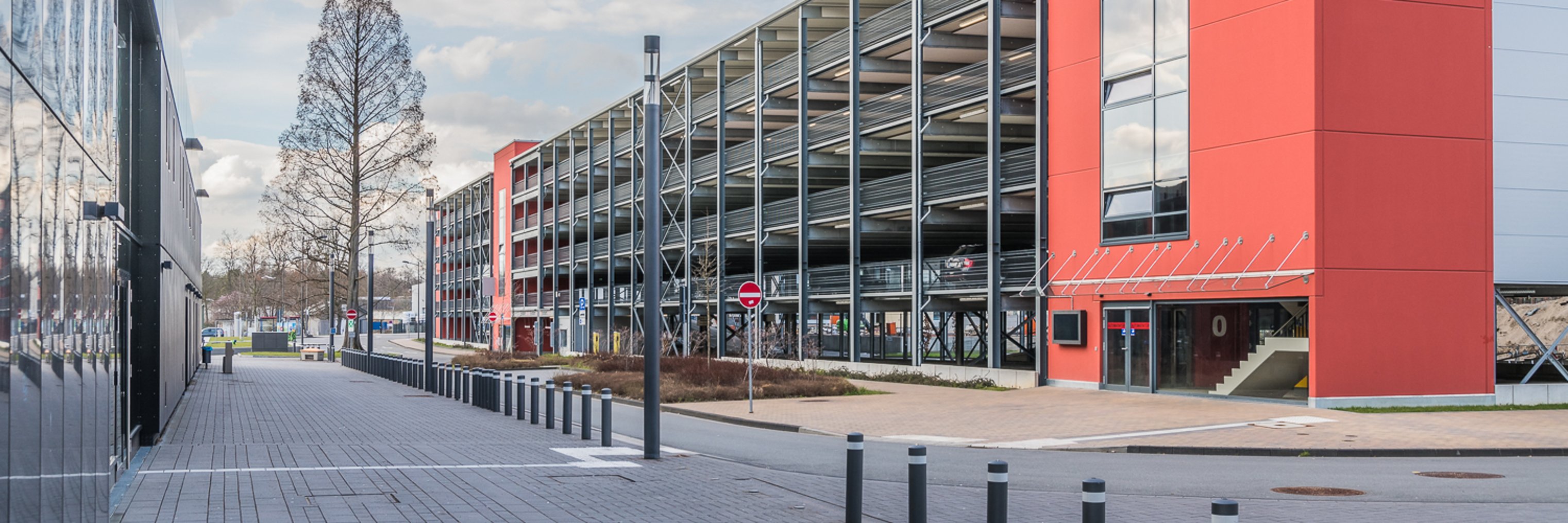 Rund 475 PKW- Parkmöglichkeiten (2x E-Zapfsäulen, 10x Behindertenparkplätze, 14x Frauenparkplätze) bietet das Parkhaus an der Stadthalle.