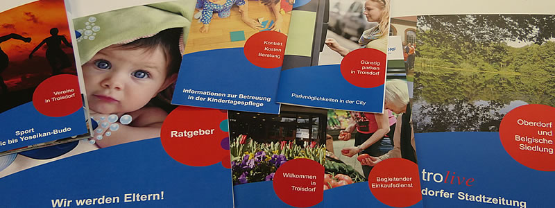 Broschüren, Ratgeber, Faltblätter: Informationsmaterial über Troisdorf