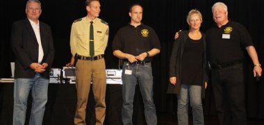 Bürgermeister Klaus-Werner Jablonski eröffnete die Party schwungvoll. Die Kids begrüßten nicht nur ihn mit tosendem Applaus, sondern auf der Bühne auch den bewährten Moderator Kriminalhauptkommissar Friedemann Geisler, Leiter des Kommissariats Kriminalprävention, dessen Kollegen Kriminaloberkommissar Jörg Seeger und Polizeioberkommissar Norbert Schelenz sowie die Organisatorin der Veranstaltung, Jugendamts-Mitarbeiterin Britta Samanns.