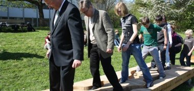 Eine „Einladung zur Bewegung“ ist die Idee, die hinter dem Motorik-Park steht, dessen erster Abschnitt am Gymnasium Altenforst entstanden ist. Bürgermeister Klaus-Werner Jablonski übergab ihn offiziell an Schulleiter Gerhard Fischer, an Sportlehrerinnen und -lehrer und die Schülerinnen und Schüler des Gymnasiums als Lern- und Lebensort.