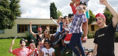 Die Kinder im Alter zwischen 6 und 10 Jahren nahmen an einer bewegten Ferienaktion des Stadtteilhauses Friedrich-Wilhelms-Hütte teil. Sie konnten mit viel Bewegung, Spiel und Spaß tobend das ungestüme Piratendasein proben. Die Gymnastiklehrer Caro Kauert und Christian Eling unterstützten die Kinder dabei tat- und stimmkräftig. Gebastelt wurden Piratenflaggen und Fernrohre, um zünftig und mutig den Stadtteilpark nach verborgenen Schätzen zu durchsuchen.
