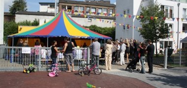 Darüber hinaus sind natürlich alle Bürgerinnen und Bürger aus der Umgebung und darüber hinaus im neuen Treffpunkt und Begegnungs-Domizil willkommen. Das waren bei der Eröffnungsfeier vor allem junge Familien mit ihren Kindern: Geboten wurde eine fidele Zirkus-Aufführung der Kinder, die beim Ferienprogramm im Haus International mit dem Kölner Spielezirkus verblüffende Akrobatik eingeübt hatten. Weitere Auskunft erhält man bei der Leiterin des Mehrgenerationen-Hauses International, Claudia Hoffmann, unter Tel. 02241/804654.