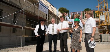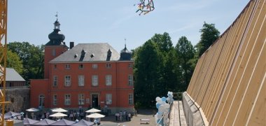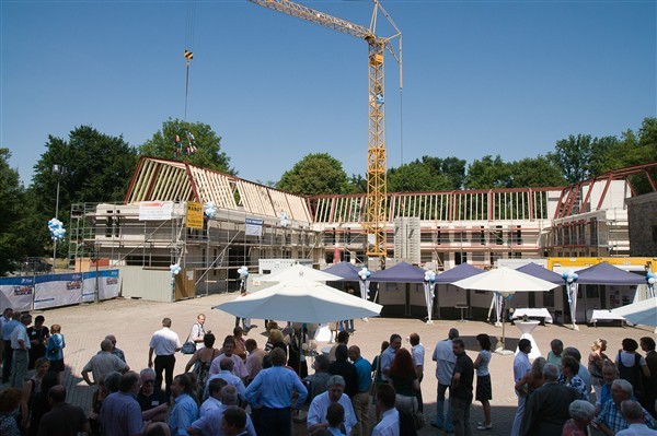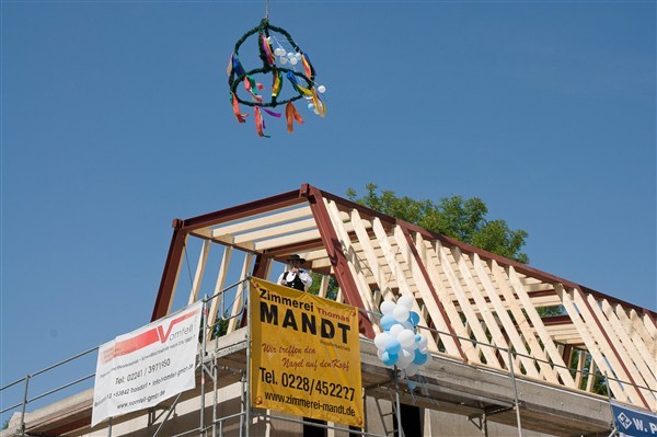 Ein Jahr nach dem Startschuss mit einem ersten Spatenstich wurde an der Burg Wissem Richtfest gefeiert. Bürgermeister Klaus-Werner Jablonski konnte zahlreich Gäste zum Richtfest auf der Baustelle begrüßen. Der sogenannte „Westflügel“ und der Hof der Burg Wissem werden mit Fördermitteln der Regionale 2010 bis Sommer 2011 baulich stark verändert und modernisiert. Rund 6,2 Millionen Euro Gesamtbaukosten werden in die historische Anlage investiert, die als Informations- und Lernorte der Regionale-Projekte „Kennen Lernen Umwelt“ und „Portale zur Wahner Heide/Königsforst“ sowie als Museum für Stadt- und IndustriegeschichteTroisdorf (MUSIT) mit dem jetzigen Bilderbuch-Museum verknüpft werden.