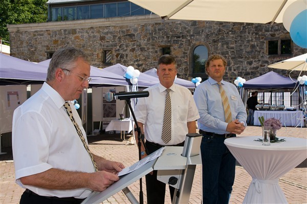 Zusammen mit Regierungspräsident Hans-Peter Lindlar und Dr. Reimar Molitor, Geschäftsführer der Regionale 2010 und im Beisein zahlreicher Gäste aus Politik und Verwaltung freute sich Jablonski über den raschen Fortschritt der Bauarbeiten am historischen Wahrzeichen der Stadt Troisdorf: „Der Umbau verbindet sorgfältig Alt und Neu, Vergangenheit und Gegenwart, Kultur und Natur. Die Elemente werden sich harmonisch und auf attraktive Weise ergänzen. Alles wird aus einem Guss erscheinen“.