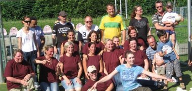 Die Erzieherinnen verloren beim Fußball trotz der hervorragenden Torhüterin Daniela Kurth gegen eine Elternmannschaft, knieend 3.v.l. Kita-Leiterin Stefanie Kirsten.