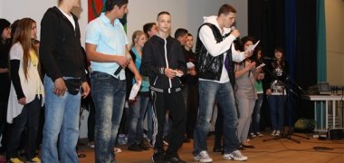 Dessen Ergebnisse wurden in einem lebhaften Abschlusskonzert den Schülerinnen und Schülern der 8. und 10. Klassen in der Aula der Hauptschule mit starken Stimmen und Worten präsentiert. Schulleiter Peter Martin und Projektleiterin Tanja Schneider waren begeistert: