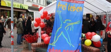 Vize-Landrätin Notburga Kunert forderte, dass das Thema enttabuisiert und offen darüber gesprochen werden müsse. Bürgermeister Klaus-Werner Jablonski, der in der City die öffentlichkeitswirksame Aktion eröffnete, berichtete aus eigenen Erfahrungen als Polizeibeamter. Er war oft im Einsatz, wenn Frauen wegen häuslicher Gewalt in Not gerieten und die Ehemänner Hausverbot erhielten. Er dankte den Helferinnen und Beraterinnen in den entsprechenden Einrichtungen, die den Frauen, die Opfer von Gewalt geworden sind, beherzt beistehen und ihnen Schutz anbieten.
