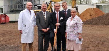 Bürgermeister Klaus-Werner Jablonski freute sich über die Baumaßnahme, durch die die Patienten bald einen noch angenehmeren Aufenthalt im St. Johannes Krankenhaus haben werden. Beim 1. Spatenstich wurde er durch Dr. med. Rolf Handrup, Chefarzt Innere Medizin, Krankenhaus-Geschäftsführer Bertin Blömer, Architekt Michael Hütt und Pflegedienstleiterin Margarete Menrath tatkräftig unterstützt. Mehr Informationen findet man unter www.johannes-krankenhaus.com.