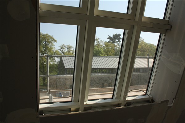 Freuen sich über den Baufortschritt: Kulturdezernent Stephan Kuhnert und Mitarbeiterin Beate von Berg im Neubau der Burg.