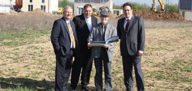 Jetzt kann man sein Wunschgrundstück aussuchen! Die Stadt Troisdorf öffnet den vorletzten Bauabschnitt im Neubaugebiet Im Schonsfeld im Stadtteil Troisdorf-Kriegsdorf. Es sind Grundstücke für den Eigenheimbau, vorwiegend für freistehende Einfamilienhäuser. Bürgermeister Klaus-Werner Jablonski und Baudezernent Hans-Christian Lehmann machten sich vor Ort ein Bild vom Fortgang der Baumaßnahmen auf der Fläche von 11,7 ha.
