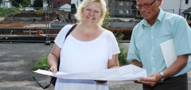 „Das ist einmalig in unserer Region, ein echtes Novum: Wir lassen die erste städtische Kindertageseinrichtung bauen, in der Kinder 24 Stunden lang an sieben Tagen in der Woche betreut werden können, so wie es manche Firmenkindergärten schon anbieten“, freute sich Beate Schlich. Die Vorsitzende des Jugendhilfeausschusses des Troisdorfer Stadtrats besichtigte die Baustelle für die neue Kindertageseinrichtung Ravensberger Weg in Troisdorf-Mitte.