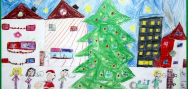 Wer die Grüße des Bürgermeisters erhält, wird sich über das Bild freuen: Die zehn Jahre alte Lisa-Marie Lindner malte Kinder, Weihnachtsbaum und Adventsmarkthütten in weihnachtlicher Harmonie unterm Sternenhimmel. Bürgermeister Klaus-Werner Jablonski wählte ihr Bild aus 20 Entwürfen aus und dankte allen Kindern für ihre bewegenden farbenfrohen Bilder, die bis zum 16. Dezember 2011 im Foyer des Rathauses zu sehen sind.