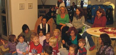 Nach weihnachtlichen Gedichten las Frau Grewe, Mitglied in der Troisdorfer Senioren-Schreibwerkstatt, zwei Texte vor. Danach kamen Kinder aus der Kindertagesstätte mit der Kita-Leiterin Brigitte Wiese und weiteren Erzieherinnen dazu, um gemeinsam mit den Seniorinnen und Senioren Weihnachtslieder zu singen. Zur Belohnung gab es für Jung und Alt leckere Schoko-Nikoläuse, für die Kinder auch Mini-Nikoläuse, die Hannelore Lichtenberg selbst hergestellt hatte.