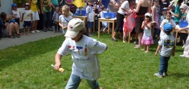 Zum Abschluss des Kindergartenjahres wurden die Kinder mit Eltern und Geschwistern in das Familienzentrum eingeladen, um gemeinsam ein Fest unter dem Motto „Wir sind topfit“ zu feiern. Abwechslungsreiche Wettspiele für Jung und Alt gab es zum Thema Gesundheit. Mal ging es um Schnelligkeit, mal um Geschicklichkeit und Ausdauer, immer ging es um Zusammenarbeit, entspanntes Zuhören und um ganz viel Spaß. Es gab Kinderaufgaben und Elternaufgaben – und viele Spiele konnten nur zusammen gespielt werden wie die gemeinsame Wasserstaffel oder der Tunnellauf. Beim Sandburgbau und der Schatzsuche ging es ebenfalls hoch her.