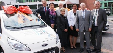 Mit der Übergabe der Fahrzeugpapiere wechselten im Rahmen einer großen Übergabe auf dem Wilhelm-Hamacher-Platz in Troisdorf sechs schicke Ford-Ka ihren Besitzer. Die VR-Bank Rhein-Sieg spendete die PKWs an Institutionen aus ihrem Geschäftsgebiet. Bei der Auswahl der Empfänger unterstützte die jeweilige Kommune die VR-Bank. Bürgermeister Klaus-Werner Jablonski freute sich, dass ein Fahrzeug in Troisdorf blieb.