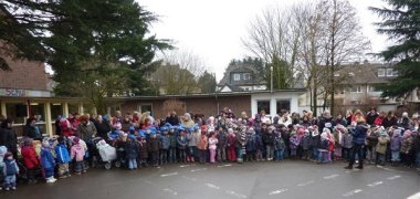 Bereits Tradition – es war das vierte Mal - ist das gemeinsame Singen der Kinder und Erzieherinnen aller Kindertagesstätten aus dem Stadtteil Troisdorf-Friedrich-Wilhelms-Hütte, also der Kitas Curieweg, Robert-Müller-Platz, Daimlerstraße und Herz-Jesu. Diesmal wurde unter dem Motto "Die Hütte singt" der Winter besungen, damit quasi verabschiedet und die anstehenden Karnevalstage eingeläutet. Zudem vergrößerte sich die Anzahl der singenden Kinder um das Doppelte auf rund 400, weil die Grundschule Roncallistraße mit von der Partie war.