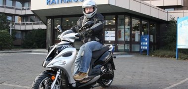 Rathaus fährt Elektro: Schon seit langem setzt die Troisdorfer Stadtverwaltung auf nachhaltige Schonung natürlicher Ressourcen, sei es bei Heizungsanlagen und Photovoltaik in städtischen Gebäuden oder bei den städtischen Fahrzeugen. Es stehen etliche Dienstfahrräder für die Mitarbeiterinnen und Mitarbeiter zur Verfügung, ein Fahrzeug fährt mit Erdgas und jetzt steht auch noch ein Elektro-Roller zur Nutzung bereit. Kosten: 2.200 Euro, die sich schnell amortisieren werden.