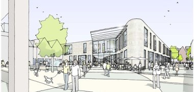 Einen Entwurf des zukünftigen Gebäudes für das Einkaufszentrum auf der Seite der Straße Am Bürgerhaus finden Sie hier als pdf-Datei.