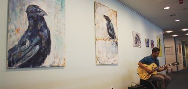 „Raben“ nennt die Troisdorfer Künstlerin Dr. Jette Jertz kurz und bündig ihre Ausstellung im ARThaus RAThaus. In der von ihr verfeinerten PanArt sind auch die Raben-Bilder entstanden. Das Vogel-Motiv passt zur Technik im Sinne von Heraklits Motto panta rhei - alles fließt: „Mit der PanArt entstehen Bilder, die den Betrachter durch ihre fröhliche Lebendigkeit faszinieren und anregen“, erklärt Jertz.