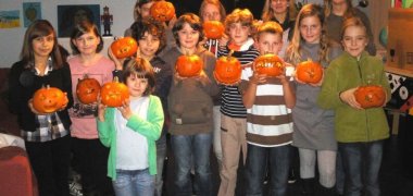 Kürbisschnitzen mit erwartungsvollem Blick auf Halloween: Zu der Aktion in den Herbstferien kamen elf Kinder im Alter zwischen 8 und 12 Jahren in das Stadtteilhaus des Jugendamts in Troisdorf-Spich. Mit großem Engagement schnitzten sie fleißig ihre Kürbisse aus und bewiesen damit einen langen Atem. Zudem lernten sie etwas über den Ursprung von Halloween und über die verschiedenen Kürbissorten.