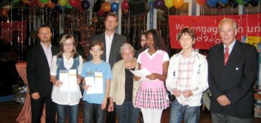 Vize-Bürgermeister Manfred Catrin zeichnete die fünf Vielleser Tigist Brhane Ambay, Jan Niklas Molter, Maxim Schessler, Magdalena Schmitz und Ilona Surmjak aus, die jeweils einen Büchergutschein im Wert von 25 Euro erhielten. Catrin lobte das besondere Engagement sowohl des Fördervereins der Stadtbibliothek als auch der Städte- und Gemeindenstiftung der Kreissparkasse Köln im Rhein-Sieg-Kreis. Sie hatte zum dritten Mal in Folge die Leseprojekte mit 2.500 Euro gefördert. Von seiten der Kreissparkasse gratulierten Regionaldirektor Ralf Klösges und Bezirksdirektor Roger Lehmann den Kindern.