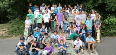 Begeisterte Skater: Die jungen Teilnehmerinnen und Teilnehmer im Skatepark am Rotter See.
