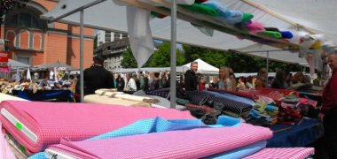 öffnet ein solcher Markt erstmals in unserer Stadt seine überaus farbenfrohen Stände. Der 1. Deutsch-Holländische Stoff- und Tuchmarkt lockt mit mehr als 60 Anbietern und einem großen Sortiment an Bekleidungs-, Dekorations-, Gardinen- und Polsterstoffen sowie Kurzwaren. Ergänzt wird das Angebot durch Patchworkstoffe, Fellstoffe zum Basteln sowie Spezialstoffe wie licht- oder wasserdichte Gewebe. Außerdem werden aktuelle Schnittmuster und Applikationen ausgestellt. Besonders charmant: Die typisch holländischen Markstände, die ein Gefühl für die Jahrhunderte alte Tradition des Handelns mit Stoffen und der Marktkultur erinnern.