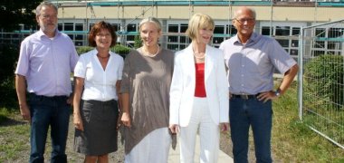 Der Wechsel von gefliesten und gestrichenen Flächen sowie die farblichen Akzente sorgen für eine grundschulgerechte Gestaltung. Die Gesamtkosten für diese Maßnahmen betragen rund 1,7 Mio. Euro, die die Stadt finanziert. Für kommendes Jahr ist darüber hinaus die Aufstockung des Verwaltungstraktes um eine Etage ins Auge gefasst und bei der Planung berücksichtigt worden.