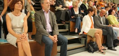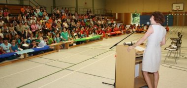 „Ihr seid die ersten und damit die jüngsten, aber Ihr seid bis zum Schulabschluss auch immer die ältesten Schüler dieser neuen Gesamtschule“, erklärte Heidi Scheffel von der Bezirksregierung Köln, die zusammen mit Schulleiterin Kirsten Heinrichs und dem städtischen Schuldezernenten Heinz Eschbach die neuen Schülerinnen und Schüler, deren Eltern und das Lehrerkollegium zum Start der neuen Schule begrüßte.