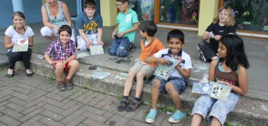 Das Stadtteilhaus in Troisdorf-Friedrich-Wilhelms-Hütte hatte Kinder und Jugendliche in den Ferien zu einem ausgefallenen Kunstprojekt eingeladen: Die Troisdorfer Künstlerin Lyudmilla Shatalova hat mit den jungen Teilnehmerinnen und Teilnehmern knallbunte Mosaikbilder gestaltet. Dazu zeichnete Shatalova auf amüsante Weise die lange Geschichte der Mosaik-Kunst seit der griechischen Antike nach. Danach folgten erste Skizzen der Kinder für ihre Werke und die Herstellung von Mosaiken auf Sperrholzplatten. Natürlich durfte auch eine vergnügte Abschlussfeier der jungen Künstlerinnen und Künstler mit leckerem Imbiss nicht fehlen.
