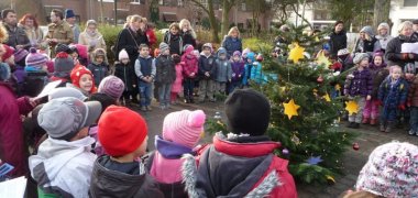 Rund um den üppig geschmückten Weihnachtsbaum vor der Kindertagesstätte Daimlerstraße in Troisdorf-Friedrich-Wilhelms-Hütte sangen rund 150 Kinder, Erzieherinnen und einige Eltern aus den städtischen Kitas Robert-Müller-Platz, Curieweg und Familienzentrum Daimlerstraße aus Leibeskräften. So lockten sie stimmkräftig Weihnachten und den Jahreswechsel herbei. Zum Abschluss bekam jeder der kleinen Sängerinnen und Sänger ein goldenes Sternchen mit einem Schokoladen-Nikolaus und die besten Wünsche für Weihnachten und das Neue Jahr mit auf den Weg. Das nächste Treffen "Hütte singt", dann auch wieder mit den Kindern des katholischen Kindergartens Herz-Jesu, wird am 7. Juni 2013 auf dem Schulhof der Roncallischule stattfinden.