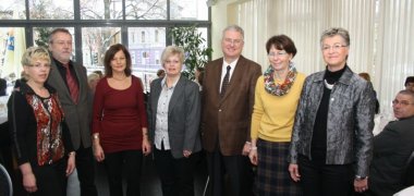 Anschließend überreichten Personalchefin Heike Linnhoff und die Vorsitzende des Personalrats, Maria Quabeck, den Jubelgästen eine schön gestaltete limitierteTroisdorf-Tasse und einen Troisdorfer Fotokalender 2013. Sie dankten ihren Kolleginnen und Kollegen mit einer kurzen und launigen persönlichen Würdigung des jeweiligen Werdegangs. „Hier sind immerhin zusammen 975 Jahre erfolgreiche Arbeit im öffentlichen Dienst versammelt“, rechnete Linnhoff vor.