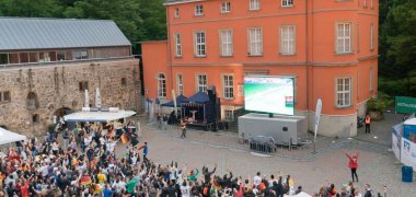 Insgesamt mehr als 8.200 Besucherinnen und Besucher fanden sich bei den öffentlichen Übertragungen der EM-Fußballspiele auf Burg Wissem ein. Sie waren nicht nur von der Atmosphäre beim Public Viewing, sondern besonders von den Leistungen und Toren der deutschen Nationalelf begeistert. Beim Finalspiel feierten 200 Troisdorfer Fußballfans das überraschend hohe Torergebnis für die spanische Mannschaft gegen Italien.