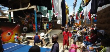 Shangilia ist ein Straßenkinderheim in den Slums von Kenias Hauptstadt Nairobi. Es besteht seit 1994 und betreut zurzeit 200 Kinder und Jugendliche. Durch viel Musik, Tanz und Akrobatik erhalten die Kinder von Shangilia („freue dich“) Mut und Selbstvertrauen. Zur Unterstützung der vielseitigen Arbeit des Kinderheims veranstaltet der Verein Shangilia Deutschland e.V. eine Benefiz-Kunstversteigerung