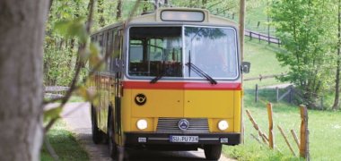 Um 11.00 (ausgebucht) und 14.30 Uhr startet jeweils ein historischer Schweizer Postbus, der Schwyzer Poschti, zu Fahrten zu den drei anderen Portalen „Wahner Heide und Königsforst“ in Köln-Porz, Bergisch-Gladbach und Rösrath.