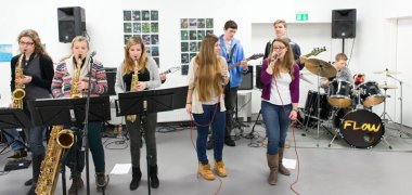 Nach musikalischem Auftakt mit Flow, der Schülerband der Musikschule, und der Begrüßung durch Bürgermeister Klaus-Werner Jablonski führte die Kunsthistorikerin Alexandra Wendorf die Besucherinnen und Besucher fachkundig durch die Ausstellung mit 21 unterschiedlichen Positionen und Ausdrucksweisen der Künstlerinnen und Künstler aus ganz Deutschland.