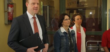 „Das Ziel des Landesprojekts Kulturrucksack ist es, Kinder aus Familien, die wenig mit bildender Kunst, Theater und Musik zu tun haben, an Kunst und Kultur heranzuführen. Für sie werden Workshops organisiert, um Impulse zu geben und die Freude an Kunst zu wecken“, erklärte Dezernent Kuhnert. Der Düsseldorfer Comic-Zeichner Peter Schaaff, bekannt für die Comic-Reihe „Andi“, erklärte den Schülern das Illustrieren, die Bildsprache und die Reduzierung von Sätzen auf Zeichen.