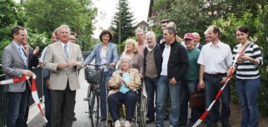 Die offizielle Verkehrsübergabe nach der umfangreichen Baumaßnahme führte Bürgermeister Klaus-Werner Jablonski in Form eines Nachbarschafts- und Grillfests durch, zu dem die Anwohnerinnen und Anwohner eingeladen worden waren. Er durchschnitt das Band, um den Weg wieder freizumachen für Anwohner, Radfahrer, Besucher des Fischerei-Museums und andere Touristen. "Wir haben schnell und umfassend gehandelt, um die Sicherheit des vielbefahrenen Radwegs und der Anwohner zu gewährleisten", erklärte der Bürgermeister.