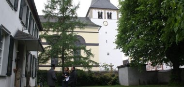 Bei einem gewohnt kurzweilig humorvollen Rundgang durch Sieglar berichtete der Sieglarer Heimathistoriker und Stadtverordnete Kurt P. Schneider erneut sachkundig über Ortsgeschichte und Denkmäler. Die Rundgänge werden in unregelmäßigen Abständen von der VHS in Verbindung mit dem Heimat- und Geschichtsverein Troisdorf angeboten. Beim jüngsten Rundgang ging es vor allen Dingen um den Blick vor, aber auch hinter die Kulissen.